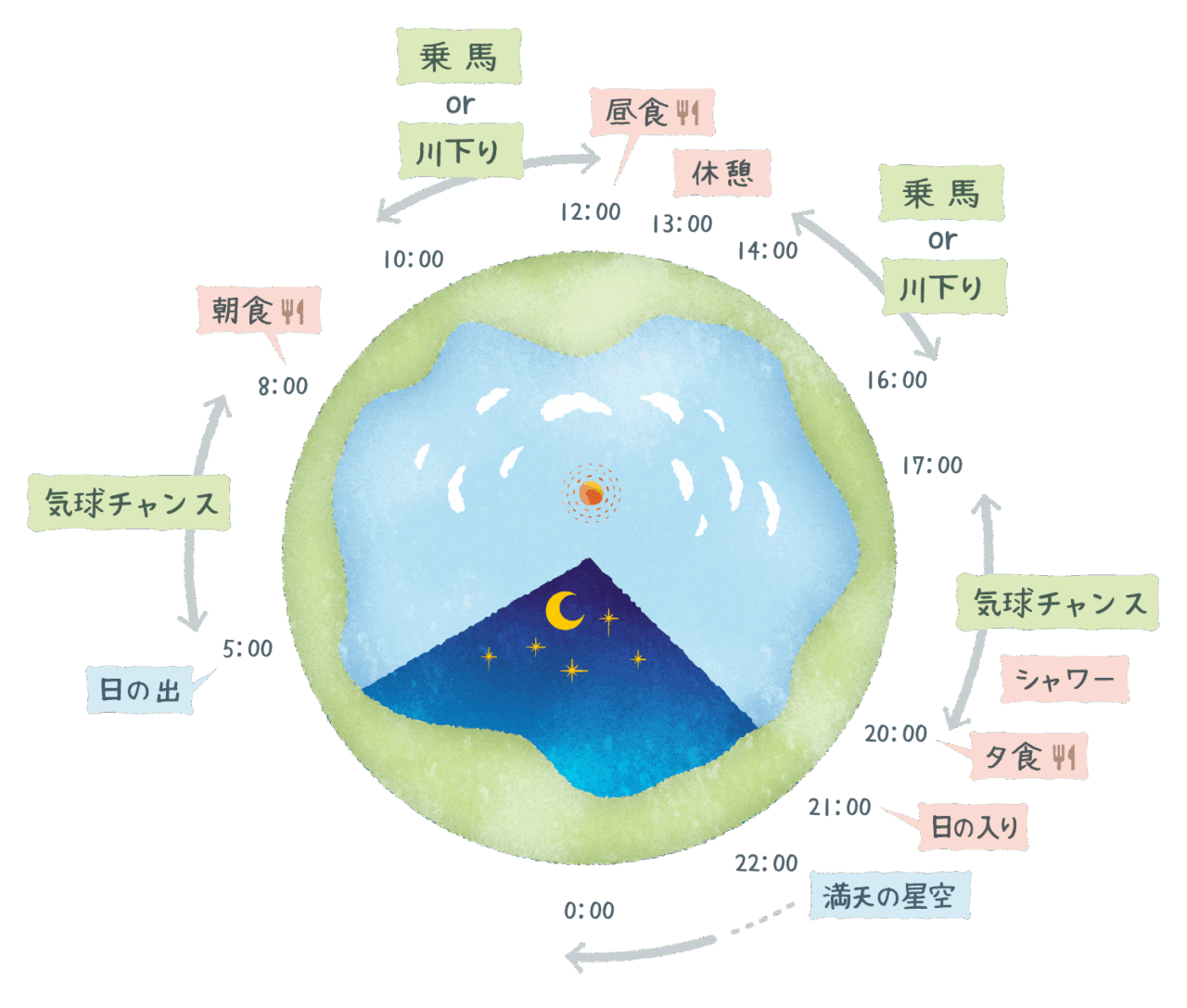 ※2 キャンプの営業期間は7月〜9月上旬までです。気球の運行は7月中旬から行います。