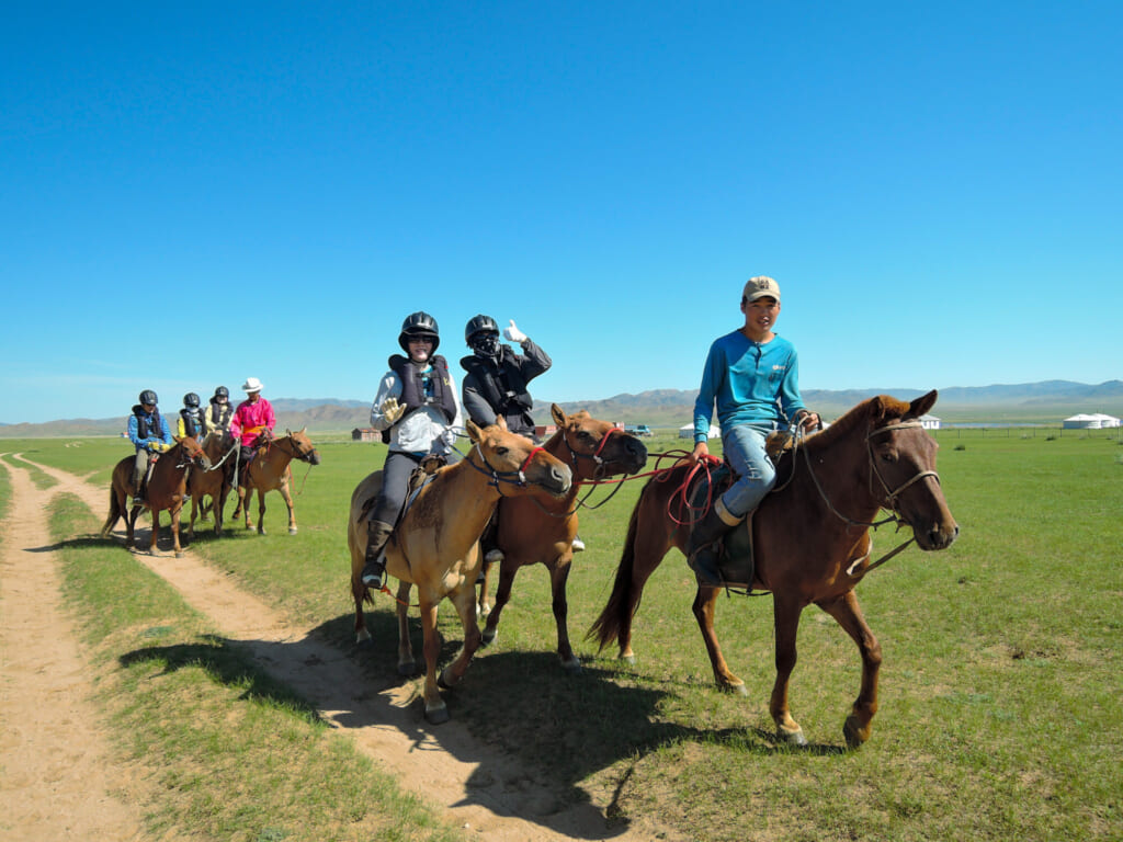 8時頃の朝食のあと、たくましい遊牧民スタッフといっしょに乗馬の時間へ。馬の背に跨れば、風と大地と一体になるひとときが楽しめます。